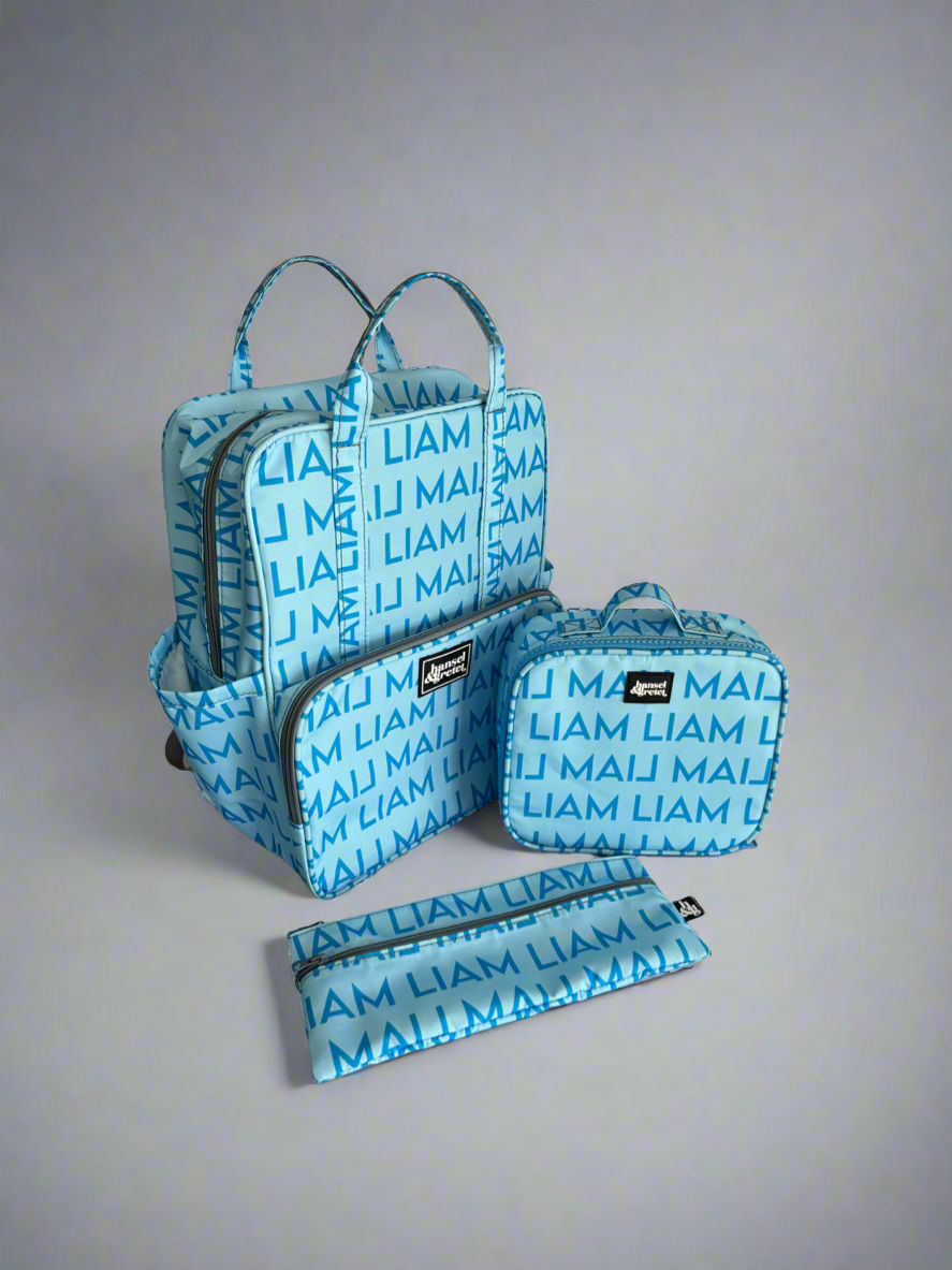 H&G Personalised schoolbag combo - Black & Grey This item is made on order and lead times of up to 5 weeks may apply. We will however always send your products as soon as it is ready.